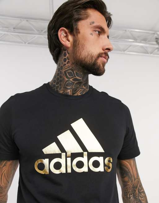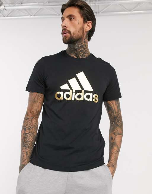Adidas Training T Shirt In Black With Gold Logo Asos